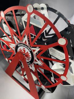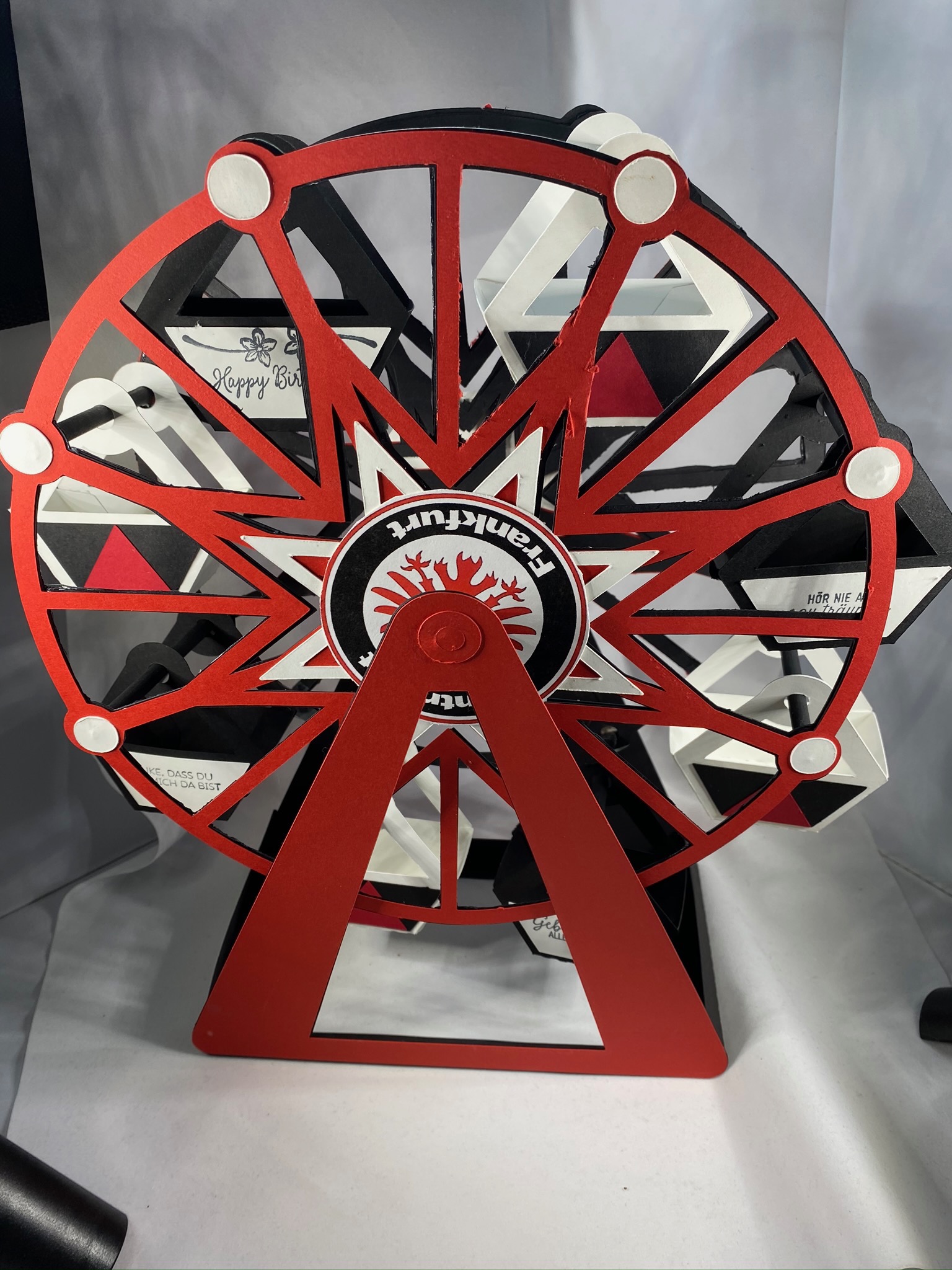 Hallo Ihr Lieben, der Auftrag kam für ein Übernachtungsgutschein nach Wien, was würde dazu besser passen als ein Riesenrad ( leider existieren davon keine Bilder). Meine Freundin Aline sah dies und meinte für ihren Mann sei dies zum 40. Geburtstag eine tolle Idee, also haben wir, Foxy und ich, es für einen Eintracht – Fan umgestaltet.