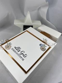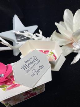 Gerne fertige ich das für Dich an − egal ob es Glückwunschkarten, Einladungen zum Geburtstag oder zur Hochzeit, Geschenkboxen, kleine Gastgeschenke oder nette Aufmerksamkeiten sind, ich kann (fast) alles nach deinen Wünschen und Vorstellungen gestalten.