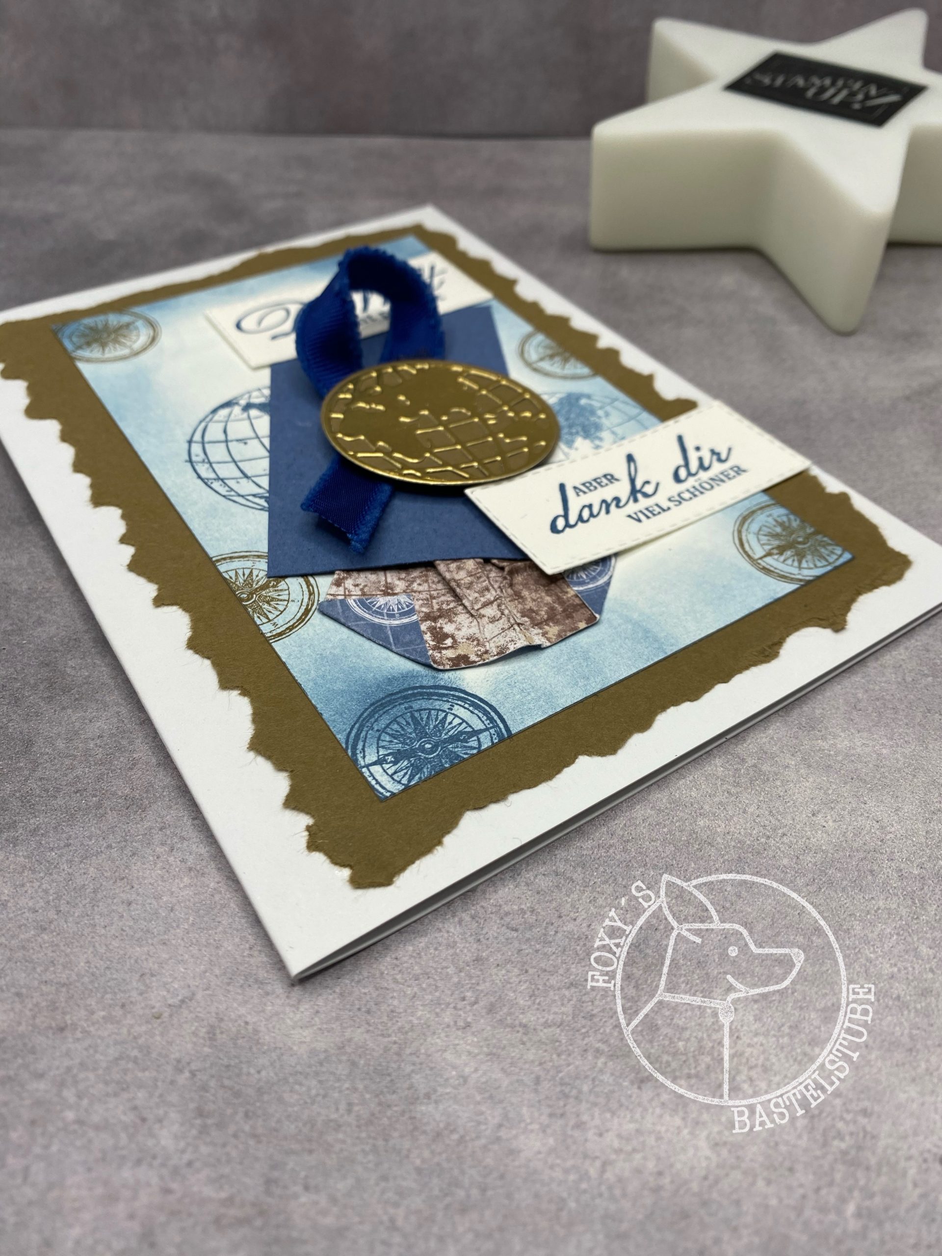 Mit unseren Stempelset Wunderbare Welt kann man nicht nur Karten daraus zaubern sondern noch ganz viel mehr. Der Cardstock ist Abendblau, unsere neue In Color. Sowie das gleichnamige DSP.