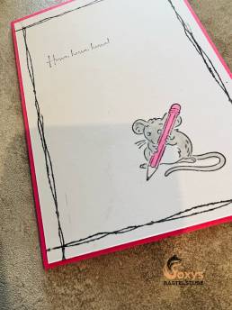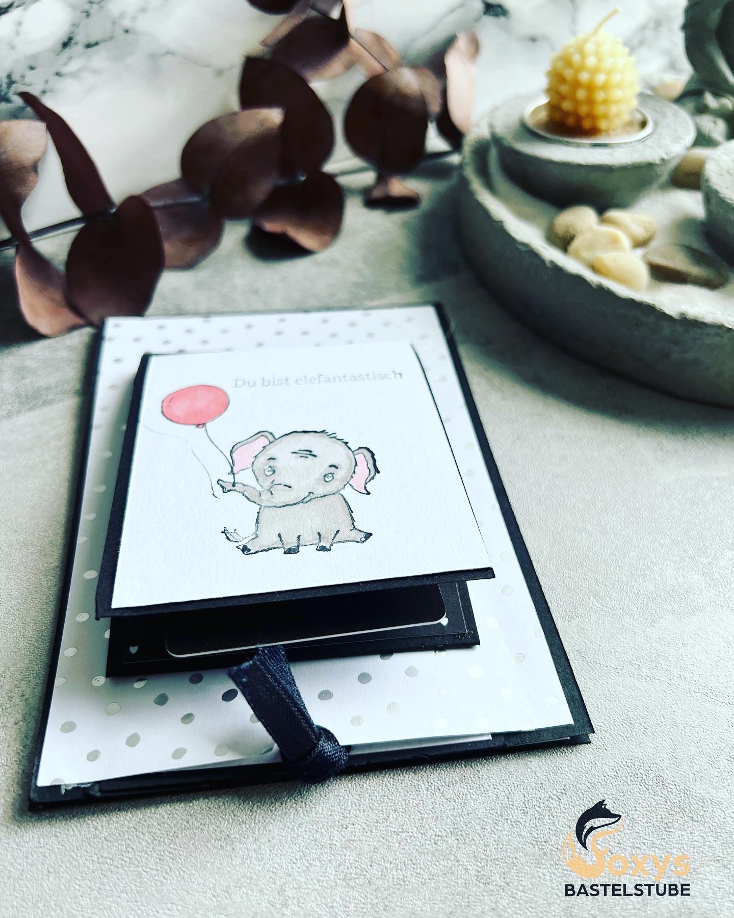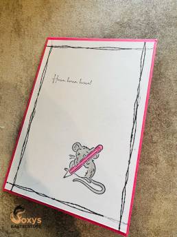 Eine kleine Geburtstagsüberraschung für ein liebes Mädchen. Ich wollte auch mal so eine Shutter Card ausprobieren. Ich dachte immer is die Schwer. Ne du es ist gar nicht schwer. Auf YouTube gibt es ganz viele Anleitungen. Für die Karte habe ich folgendes gebraucht: Stempelset Grüße mit Herz und Mischievous Mice, Stanze Briefmarke. Der Verschluss ist ganz besonders.Euch allen noch einen schönen Montagabend. Genießt das schöne Wetter.
