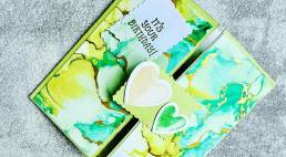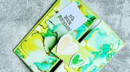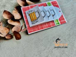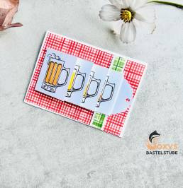 Ihr sehr diese Woche war ich im Technikrausch. Ich habe ganz viele "besondere" Karten kreiert. Bei der Wasserfall Karte habe ich das Stempelset"eine Runde Glück" benutzt. Für mich war diese Technik neu. Aber der Bierkrug passt ja perfekt dafür. Ich habe sie als Einladung für einen Grillfest benutzt.